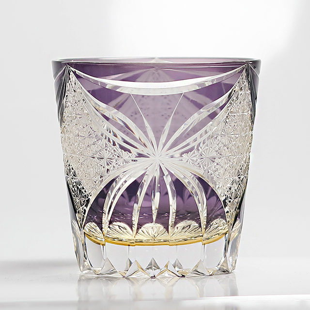 Hand blown and Hand Engraved Pattern Color tinted Glass Tumblers/Color overlaid Glass tumblers